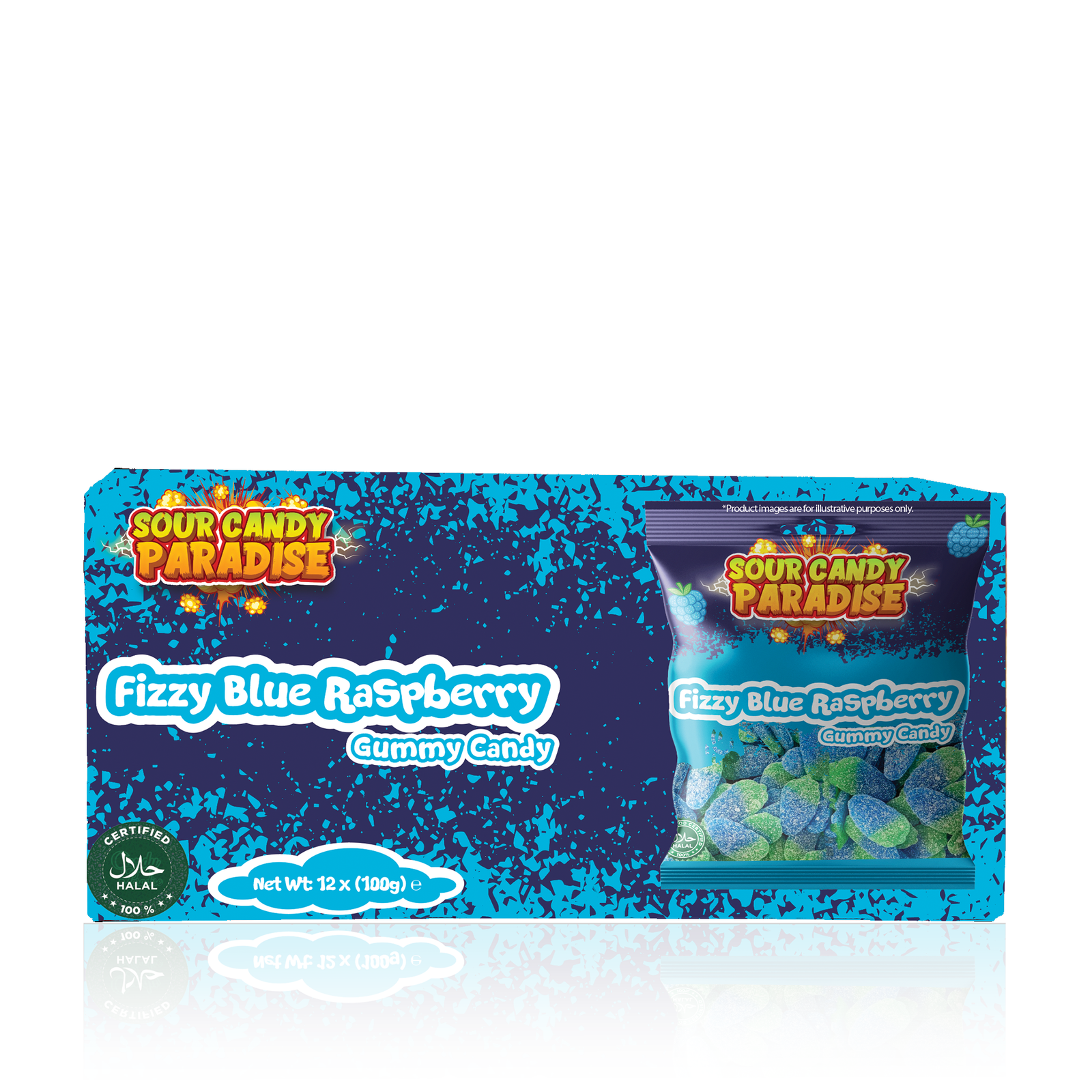 Get ready for a tangy thrill with Sour Candy Paradise Fizzy Blue Raspberry Gummy Candy!