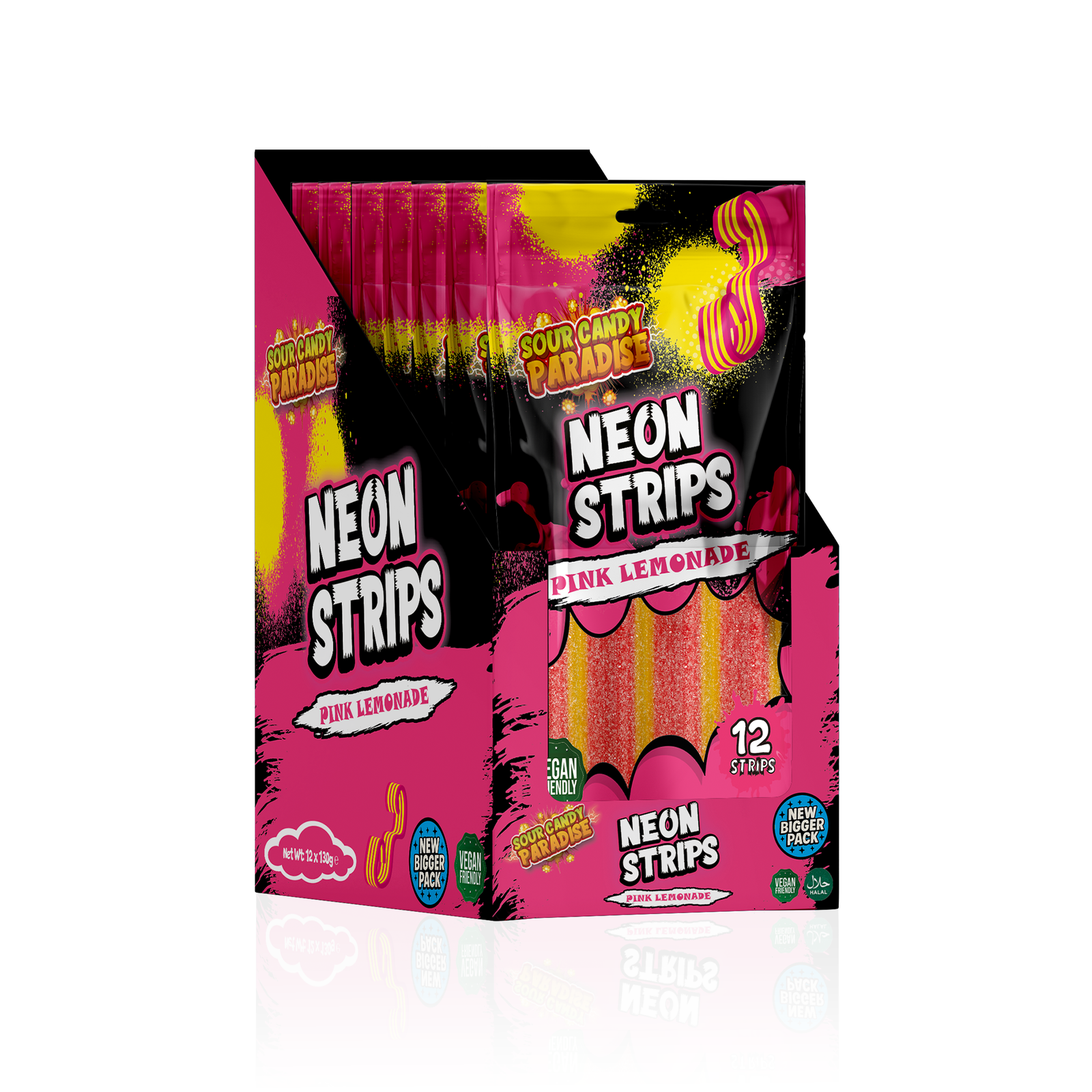 Sour Candy Paradise Neon Strips Pink Lemonade 12x130g